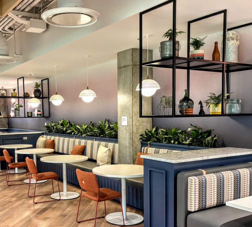 We brought Nature Indoors to an Austin tech company by adding clean, crisp planters with lush greenery throughout the office. This added cool color without overwhelming the space. Indoor plants are essential for a modern lifestyle and workplace, enhancing the environment and promoting a fresh, lively touch of nature. Studies show good interior design with plants, bright light, windows, and cool colors stimulates employee creativity.